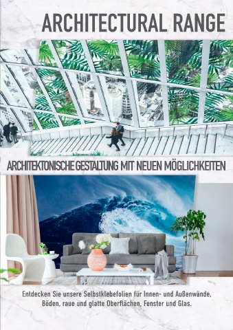 INNENWANDGESTALTUNG AUSSENWANDGESTALTUNG FENSTERGESTALTUNG ARCHITEKTONISCHE GESTALTUNG MIT NEUEN MÖGLICHKEITEN BODENGESTALTUNG Entdecken Sie unsere Selbstklebefolien für Innen- und Außenwände, Böden, raue und glatte Oberflächen, Fenster und Glas.